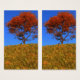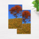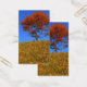 Un paysage 3D paisible en automne, créé en Vue. Au sommet d'une colline recouverte d'une haute herbe dorée, contre un ciel bleu clair, une érablière orange solitaire se dresse sous un banc en bois pour s'arrêter et se reposer.