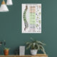 The chiropractic poster list the effects of spinal subluxation on body areas and possible symptoms associated. Colour coded by spinal level. Illustration of nerve innervation of organs. Sized for 24" X 36" chart.