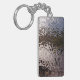 Un Porte - clé Acrylique Oblong distinctif à deux côtés pour personnaliser, avec un motif abstrait tourbillonnant, chatoyant, à effet serpent en brun et blanc argenté, d'un design numérique de Judy Adamson. Vous pouvez customiser le monogramme ou les initiales en modifiant la police ou la couleur ou en la supprimant complètement.