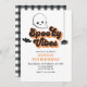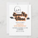 Éffrayant Vibes Invitation d'anniversaire Halloween avec fantôme, chauve-souris et araignée.