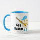 An egghead in a baseball cap and holding a baseball bat with the text Egg Batter is a funny food design for sports fans and cooks.