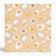A cute pastel colour pattern with illustrations about breakfast foods: milk, bread, egg, coffee, toast, omelette.