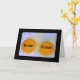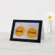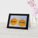 Two sunny-side-up eggs, photographed next to each other, are the subject of my "Congratulations To An Egg-stra Special Couple" wedding card. "Bride" and "Groom" in black text on each of the eggs, completes the front image of the card.