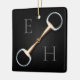 For equestrians and horse lovers, this ornament features a trompe l'oeil illustration of a copper mouth eggbutt snaffle bit between two monograms. You can either use your first and last initials of your name or the initials of a couple.