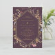 Eggplant Boho Wildflowers Gold Geo Frame Wedding Invitation