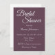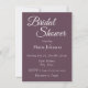 Simple style, bridal shower invitation that features a trendy, eggplant colour background along with the future bride's name and party event time and location, contact, etc., printed in white, stylized lettering. Personalize your invitation by replacing text with your own bridal shower information. Select your invitation paper style and quantity.