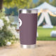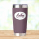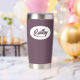 Gift your wedding bridesmaid with this trendy and personalized, stainless steel, thermal tumbler with her name in stylized script in a white oval design. Background colour and script is an eggplant colour. Personalize your thermal tumbler by editing and replacing bridesmaid name with desired name. Available in many, popular bridesmaid wedding colour schemes.