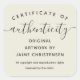 Chic minimalist certificate of authenticity sticker in eggshell and brown to which you can add your name or business name.