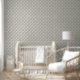 A pretty eggshell white and grey on cream pattern peel and stick wallpaper style for an accent wall, or other surfaces like the inside backs of bookshelves, cabinets, dressers and refrigerators. Be creative and think out of the box!