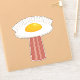 Vector cartoon illustration of a delicious sunny side up fried egg UFO with a yummy bacon slice tractor beam with EGGSTRATERRESTRIAL text. Keywords: egg, bacon, breakfast, UFO, alien, sunny, side, cartoon, space, extraterrestrial, food, cute, yolk, sci-fi, science, fiction, martian, humour, meat, pork, abduction