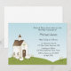 Invitation religieuse pour fille ou garçon avec église blanche sur la colline avec fleurs jaunes et petits agneaux. Convient aux baptêmes, baptêmes ou confirmations. Graphiques©Graphiques Country Life