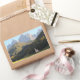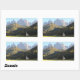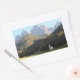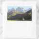 Autocollant photo rectangulaire avec l'église de San Giovanni à Ranui (Sankt Johann) en face des pics de montagne Geisler ou Odle dolomites à Père Noël Maddalena (Sankt Magdalena) dans le Val di Funes en Italie.