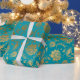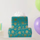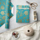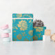 EGold & Turquoise Blue Floral Pattern Wrapping Paper