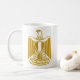 The "Eagle of Saladin" holds a scroll on which the name of the state appears in Arabic script, Gumhūriyyat Miṣr al-ʿArabiyyah ("Arab Republic of Egypt"). The eagle carries on its breast a shield with the flag's colours — but with a vertical instead of a horizontal configuration. When appearing on the national flag, the eagle is rendered entirely in gold, and white. During the union with Syria in the United Arab Republic (1958–1961), and in the ten years afterwards when Egypt retained the union's official name, the two green stars of the union's flag appeared in the white band of the eagle's shield. Between 1972-1984 the eagle was replaced by the golden hawk of Qureish, as part of the symbolism of the Federation of Arab Republics.