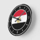 Egypt Flag Elegant Round Clock with the Egypt flag positioned in the middle and lovely white clock numbers on the clock edge. Delightful black background with the white oval elements finalize the design putting emphasis on the elegance. Beautiful combination of black and white with the skillful integration of the national flag colors make this clock the perfect gift and the great show piece on the wall. © CountriesOfTheWorld
