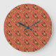 A chic Round Acrylic Wall Clock, with a pattern of traditional Egyptian motifs, Fish and Crocodiles, on a Rusty Red background. Part of the Posh and Painterly "Egyptian" collection, this pattern can easily be adapted to fit any Wall Clock.