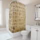 This unique and stylish shower curtain features an Egyptian hieroglyphics pattern. The hieroglyphics are displayed in a horizontal pattern across the rug as though it were a printed manuscript or ancient document. The background features a brown papyrus design with faded and darkened areas to resemble realistic hieroglyphics on papyrus. This is a perfect addition for the bathroom, or as a gift for fans or historical art, Egypt, or archaeology.