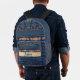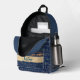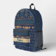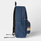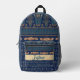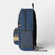 On this stylish back back is a dreamy blue mysterious egyptian hieroglyphs with scarabs and egyptian lotus in blue shading where on the front pocket is a gold band where you can personalize it with a name, phrase or logo.