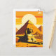 vintage postcard design of the Great Sphinx and the pyramids of Egypt under a dramatic desert sunset. Perfect for collectors, travelers, and art enthusiasts.