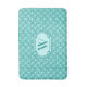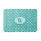Egyptian-inspired Art Deco tile pattern bath mat with monogram in dark turquoise blue and pastel aqua - mixed media digital design