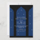 This stylish Eid al-Fitr invitation features a nighttime scene with a navy blue sky and sparking white stars visible through decorative windows. Personalize the white and gold text with your event details for an elegant Eid invite to send to your loved ones.
