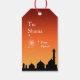 Illustration de l'Aïd avec une scène du ciel du soir : silhouette d'une mosquée sur un ciel rouge du soir.