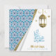 Eid Mubarak Arabic Calligraphy Pattern Gold Blue Holiday Card