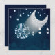 Eid Mubarak Crescent Stars Mosque White Blue Holiday Card