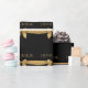 ! A sleek black background sets off the shining gold ribbon graphic for elegant style.