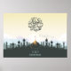 Eid mubarak lettering with mosque and birds Poster.