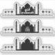 Eid Mubarak greeting illustration: a mosque and palms silhouette with and without typography. Set includes 3 stickers.
