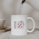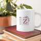 Presenting our exquisite Jumbo Ceramic Mug, a masterpiece of contemporary design featuring two distinct yet cohesive designs on a single mug. One side beautifully showcases a minimalist, modern mosque line art illustration, gracefully set within a serene soft pink circle, complemented by elegant "Eid Mubarak" typography. The reverse side features a sophisticated personalized initial and custom name (as seen with 'ZAYNAB' and 'Z' for example), nestled within delicate botanical line art. This customizable mug perfectly balances modern aesthetics with a respectful nod to Eid.