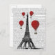 Eiffel Tower and Red Hot Air Balloons Postcard