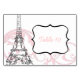 Soft pink swirling scrolls are the background for the Eiffel tower, the world's most recognizable landmark from Paris, the world's most romantic city!  The perfect invitations, labels, and cards if you're going to be getting married in Paris, or if you have a Paris themed wedding! We've created envelopes, mailing labels, and much more so everything you need matches.  We show it on white, but you can easily change the background colour to match your wedding colours.  Any of the text may be altered or removed by clicking on Customize it.