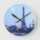 Eiffel Tower at Dusk Round Clock