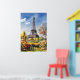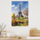 This watercolor painting captures the iconic Eiffel Tower in Paris, France, surrounded by a vibrant display of spring flowers in bloom. The scene evokes a sense of romanticism and tranquillity, with the tower standing tall against a bright blue sky.