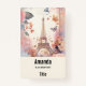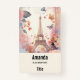 Name tag with a stylized Eiffel tower image surrounded by pretty butterflies and delicate garden flowers.