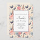 Birthday invitation with an elegant pattern. Pink roses, blue-grey butterflies and an Eiffel tower. A French themed pattern.