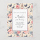 A party invitation postcard with an elegant pattern. Pink roses, blue-grey butterflies and an Eiffel tower. A French themed pattern.