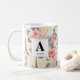 A mug with an elegant pattern. Pink roses, blue-grey butterflies and an Eiffel tower. A French themed pattern.