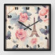 Eiffel Tower Butterfly and Roses Pattern Square Wall Clock