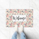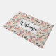 A welcome doormat with an elegant pattern. Pink roses, blue-grey butterflies and an Eiffel tower. A French themed pattern.