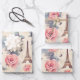 Wrapping paper sheets with an elegant pattern. Pink roses, blue-grey butterflies and an Eiffel tower. A French themed pattern.