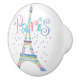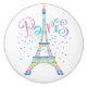 EIFFEL TOWER CONFETTI A light hearted, multi-coloured Eiffel Tower with a whimsical "Paris" raining confetti.