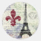 A distressed collage design featuring iconic French images, vintage sheet music, and vintage French handwriting from my personal collection of very old postcards.