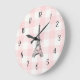 Eiffel Tower French Country Pink Gingham Pattern Large Clock