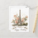 An elegant and romantic greeting card design featuring a beautiful watercolor-style illustration of the Eiffel Tower. The iconic Parisian landmark is surrounded by soft, pastel pink and cream roses and accented with delicate golden speckles. Customise with your own text the ribbon banner at the bottom display.