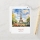This watercolor design showcases a view of the Eiffel Tower in springtime as it's beautifully framed by green foliage and peach flowers. Let yourself get whisked away to Paris, France with this breath-taking view of one of the city's most iconic sights.