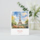 This watercolor design showcases a view of the Eiffel Tower in springtime as it's beautifully framed by pink foliage. Let yourself get whisked away to Paris, France with this breath-taking view of one of the city's most iconic sights. Customize this save the date card to make it uniquely your own so that it's ideally suited for your special day.