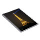 This is a photo of the Eiffel Tower in Paris, France. This photo was taken at night. La Tour Eiffel is illuminated at night, lighting up the City of Light. A beacon rotates around the top of this famous and popular tourist attraction. The Eiffel Tower is an iconic Parisian landmark.